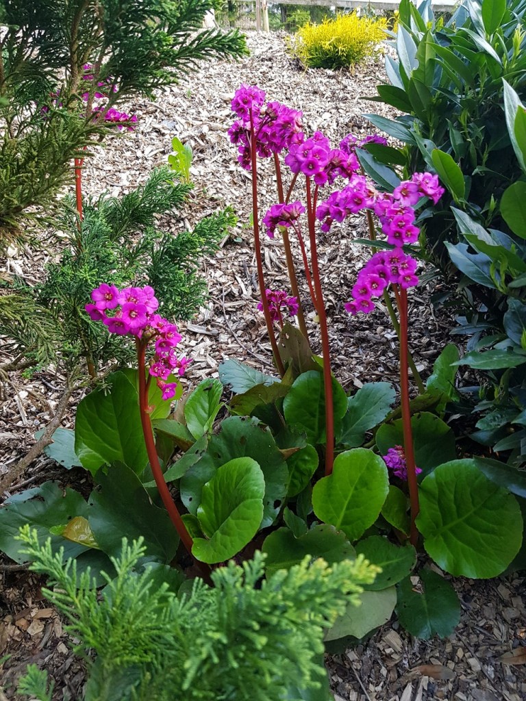3 mai 2022 – La floraison rose magenta du Bergenia ‘Overture’. Et non ‘Ouverture’ comme on le voit trop souvent…