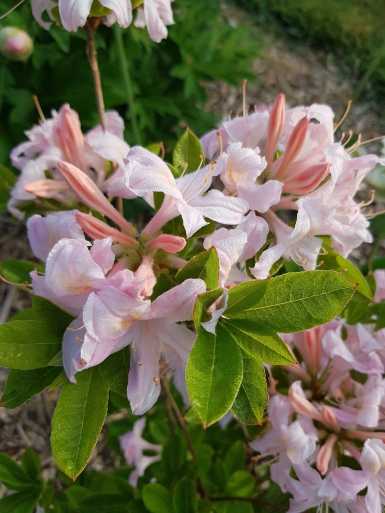 15 mai 2022 – Couvert de la rosée matinale, Rhododendron viscosum ‘Replique’ au parfum enivrant.