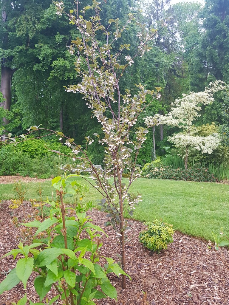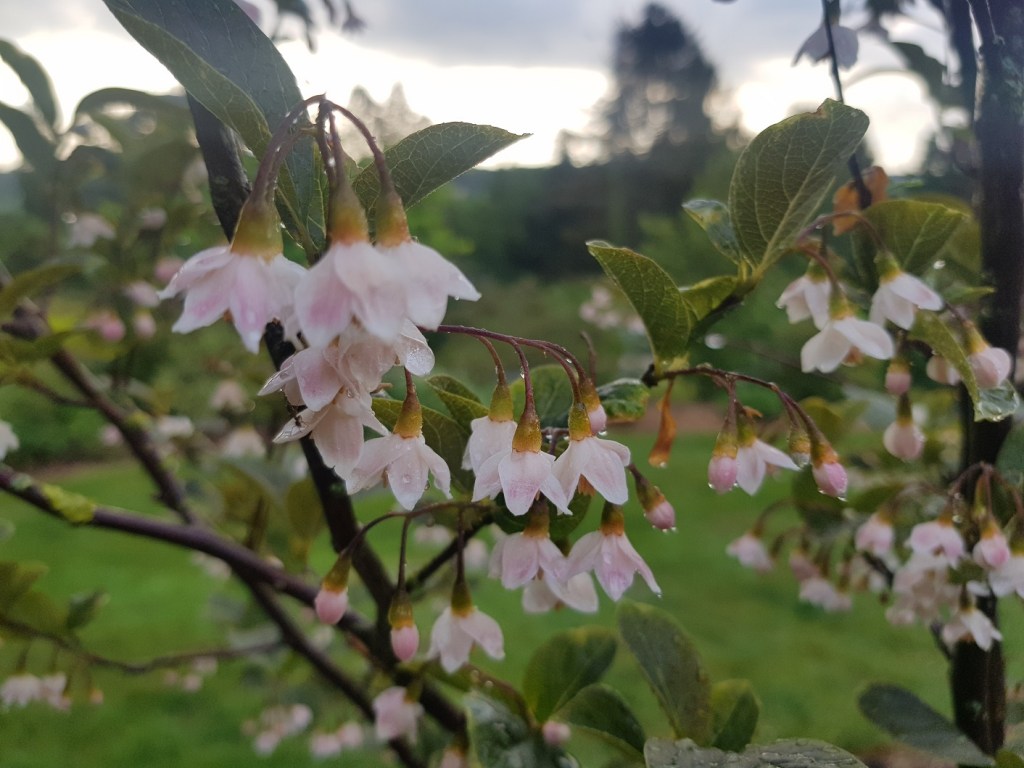 24 mai 2022 – La photo du jour : Styrax japonicus ‘Wespelaar’. Planté ce printemps. Feuillage vert virant vers le brun et jolies clochettes rosées. On va voir s’il se plaît ici.