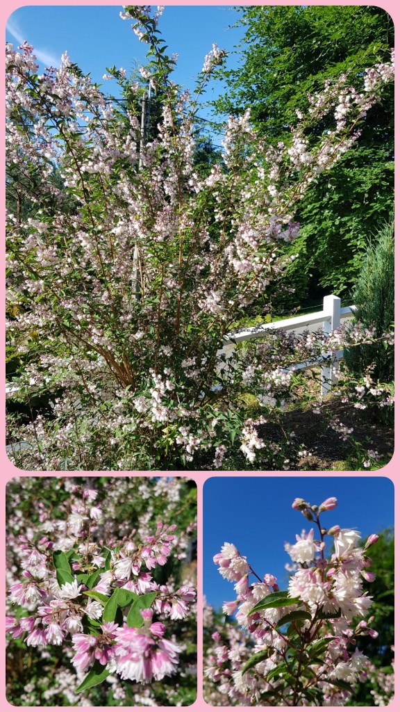 12 juin 2022 – Le Deutzia crenata ‘Pride of Rochester’ est une valeur sûre au jardin. On le trouve très facilement en pépinière. Ses tiges arquées apportent beaucoup d’élégance à cet arbuste très facile à cultiver. Ses fleurs doubles, vaporeuses et pleines de romantisme, grâce notamment à leur couleur blanche teintée de rose explosent depuis déjà 3 semaines !