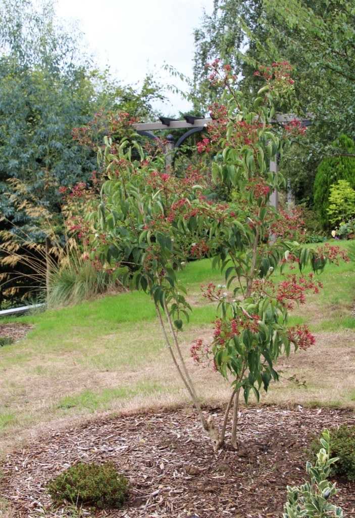 La floraison blanche au parfum bien marqué début en août et lorsque les pétales fânés tombent au sol, les calices des fleurs virent au rouge rosé et donnent l’impression d’une seconde floraison. Un vrai bonheur !