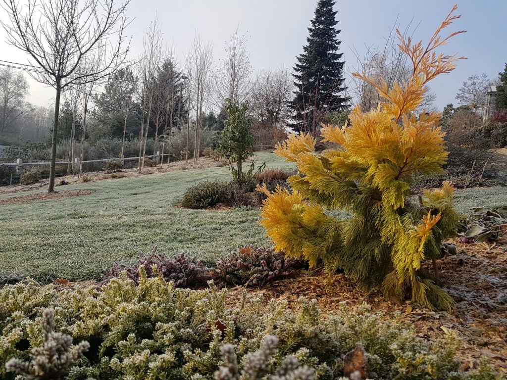 Dans le jardin d’hiver Fire & Ice, Le Pinus contorta ‘Chief Joseph’ se fait remarquer. Le froid de l’hiver fait virer sa couleur au jaune éclatant.