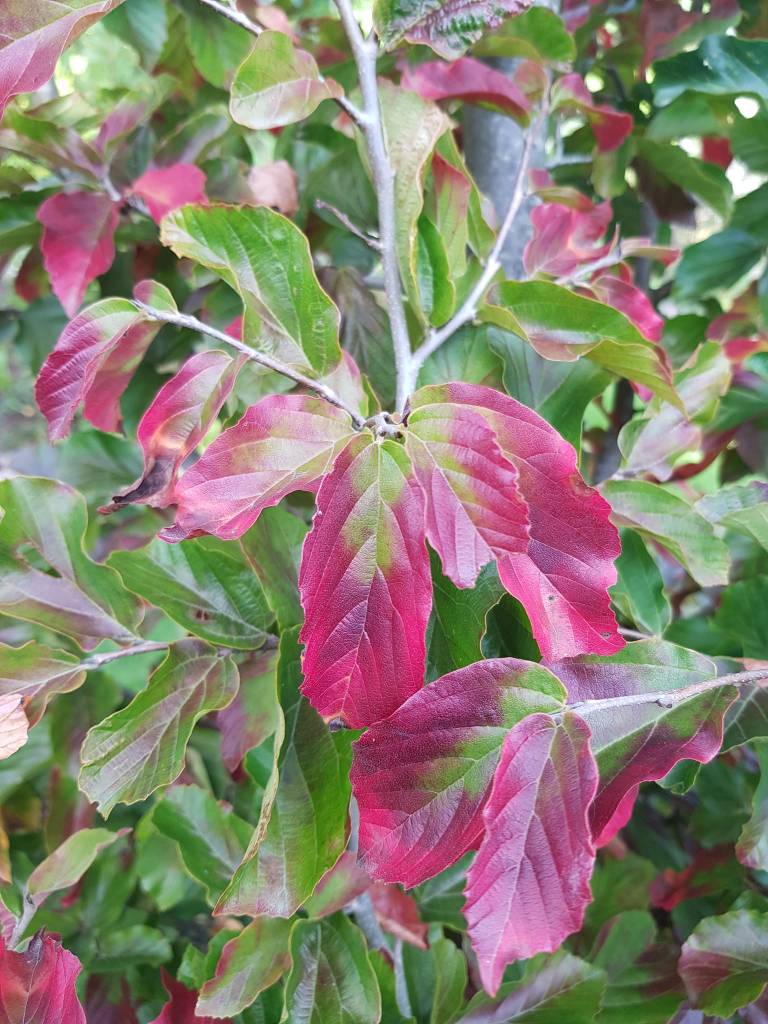 27 septembre 2022 : Certains feuillages valent toutes les floraisons ! Le Parrotia persica ‘Jodrell Bank’ et ses nuances de couleurs vives fait le show en ce moment.