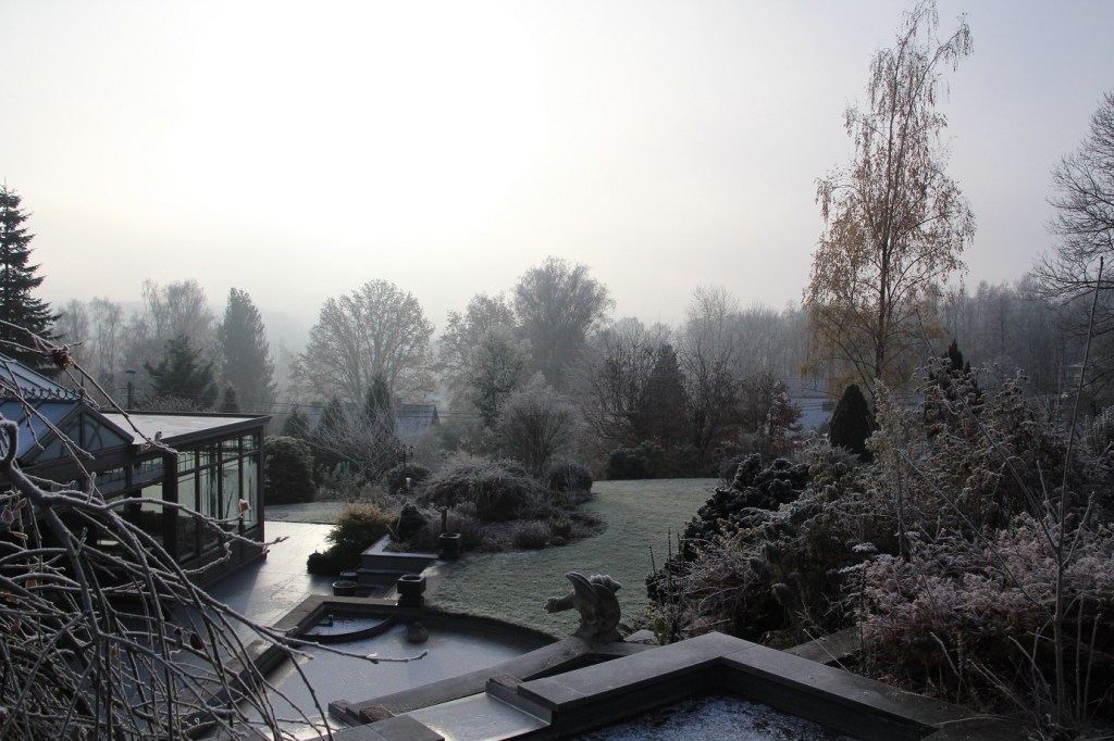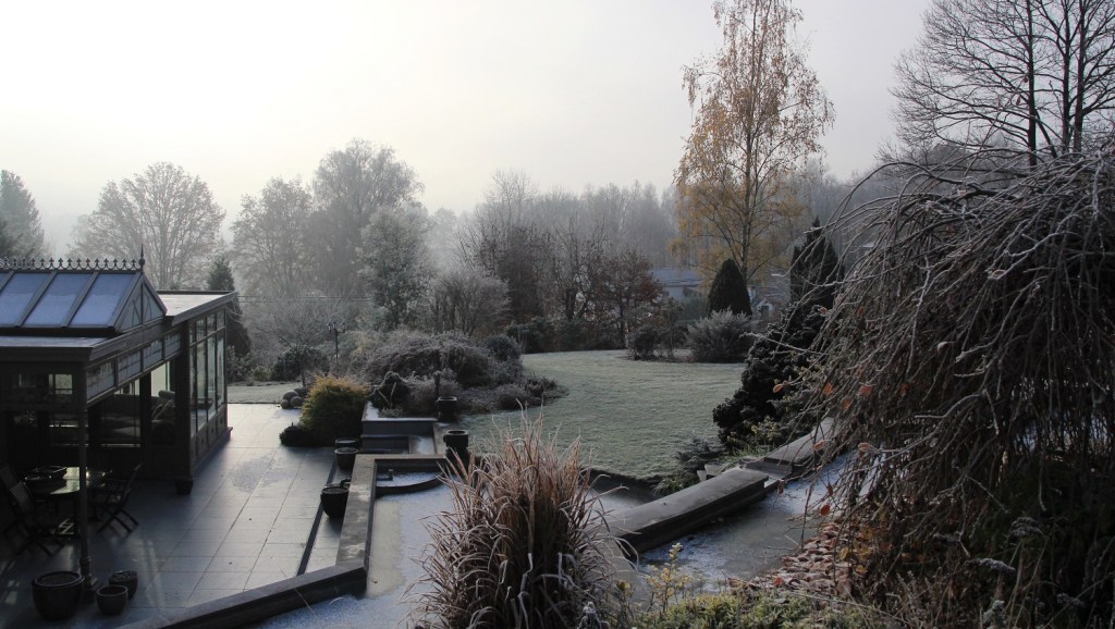 Autre ambiance à l’arrière du jardin. La pièce d’eau est figée et le silence est d’or.