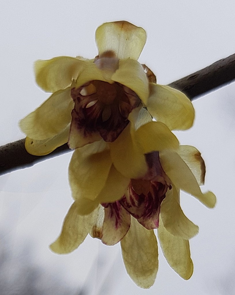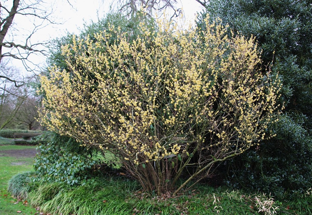 J’ai pu admirer le Chimonanthus praecox lors d’une visite de l’arboretum de Kalmthout en janvier 2020. Quelques semaines plus tard, il était planté au jardin. Il va donc entamer ici sa 4ème année. Pour la première fois, après cette floraison, je le taillerai pour qu’il s’étoffe.